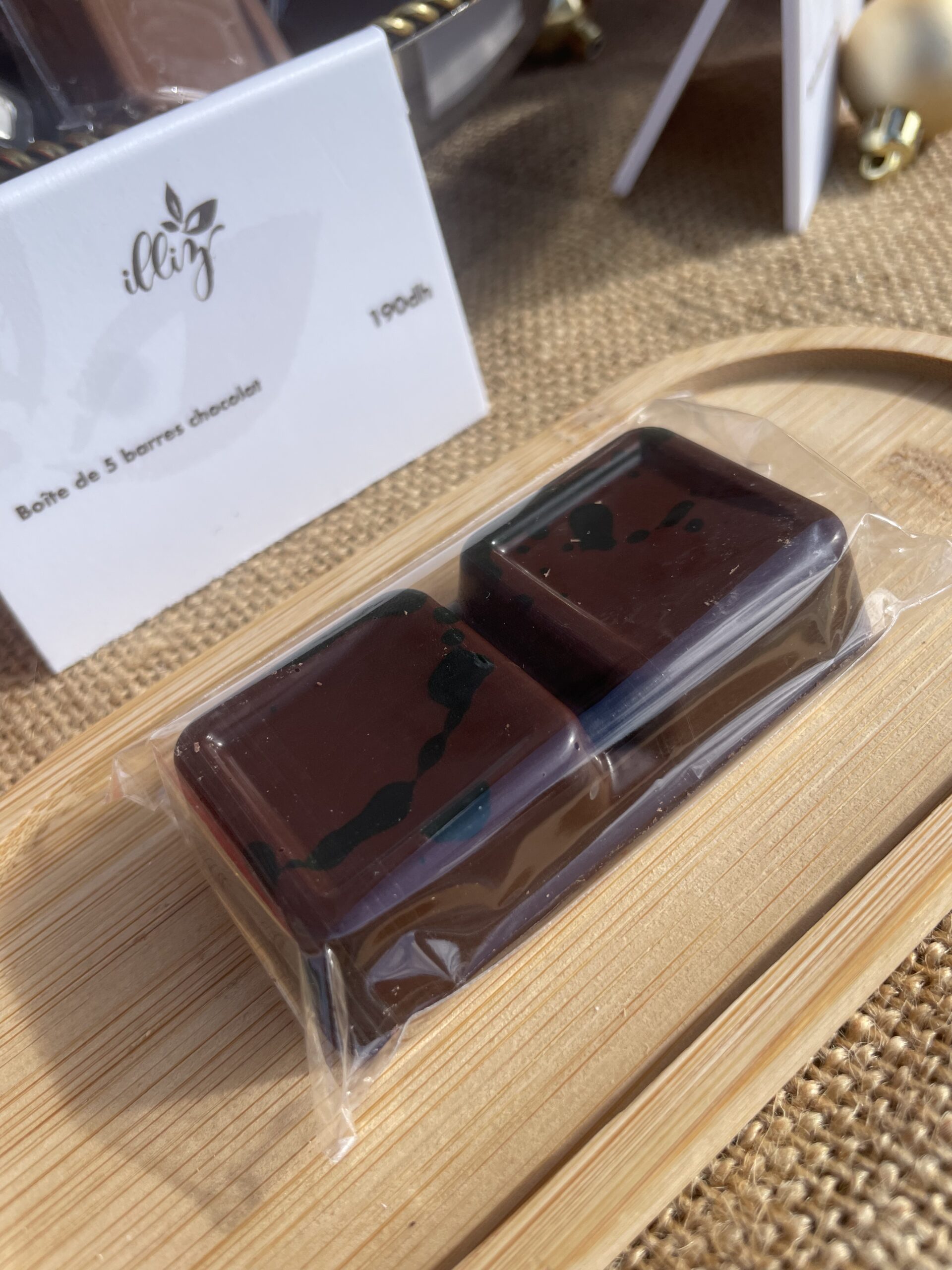 Barre chocolatée artisanale alliant le croustillant du kunafa, la finesse de la pistache et un enrobage chocolaté intense.